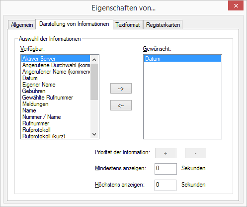 In jedem Fall wird die anzuzeigende Information in das Listenfeld „Gewünscht“ kopiert.