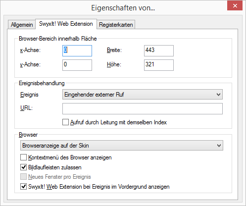 Auf dieser Registerkarte können Sie weitere Eigenschaften für die SwyxIt! Web Extension definieren: