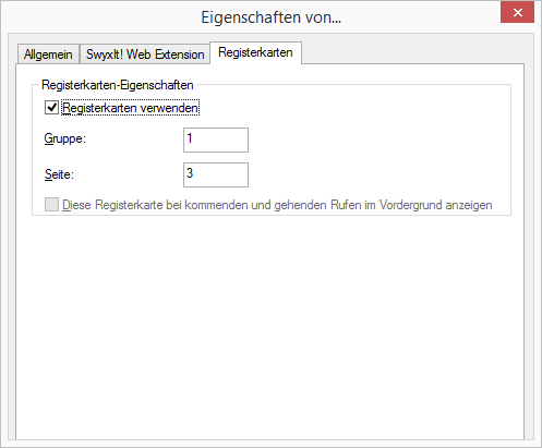 1 Klicken Sie auf die SwyxIt! Web Extension. Es erscheint das Dialogfeld „Eigenschaften von...”.