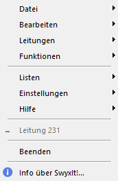 Das allgemeine Kontextmenü ist weitgehend identisch mit dem Menü der Menüleiste. Es unterscheidet sich lediglich durch die vertikale Anordnung.