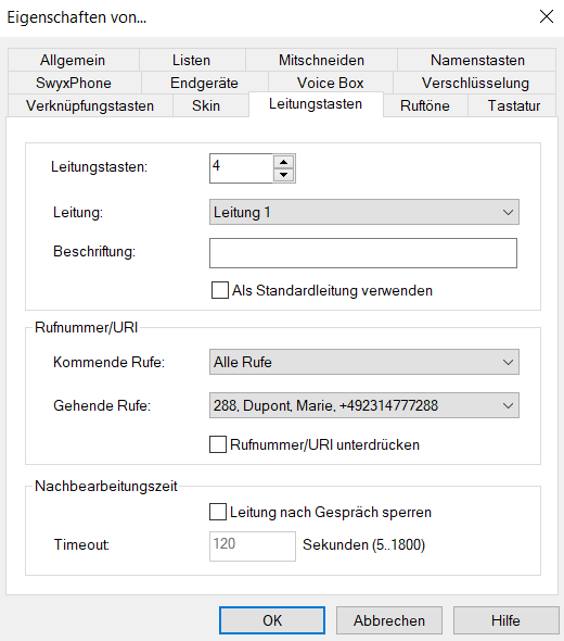 Mit Hilfe dieser Registerkarte konfigurieren Sie Ihre Leitungstasten. Sie können folgende Optionen festlegen: