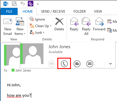 2 Click on the handset icon to make a call via SwyxIt! Classic.