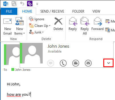 1 Hover the mouse over the coloured box to open the Outlook contact card.