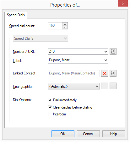 If you have assigned a linked contact to the speed dial button, the respective contact data will also be assigned to the context menu and the contact card of this speed dial button.