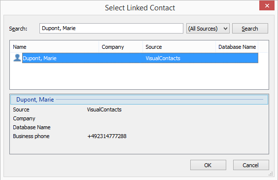 5 If you want to assign a linked contact to a speed dial button, click on next to the "Linked Contact" field.