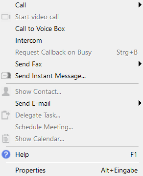 You can see from the context menu of the Speed Dial whether a contact stored on a Speed Dial can be assigned to a Lotus/IBM/HCL Notes contact. The assignment of a contact is needed when you make task or meeting requests, or want to display the calendar information for a user on the Speed Dial.