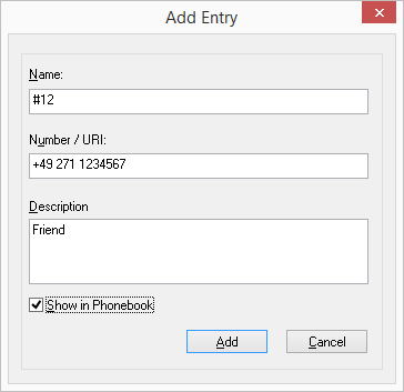 If you are authorized to change the Global Phonebook, you can also store global abbreviated dialing codes with the help of SwyxIt! Classic. To do this, create a new entry in the Global Phonebook and enter the dialing code of your choice in the "Name" field.