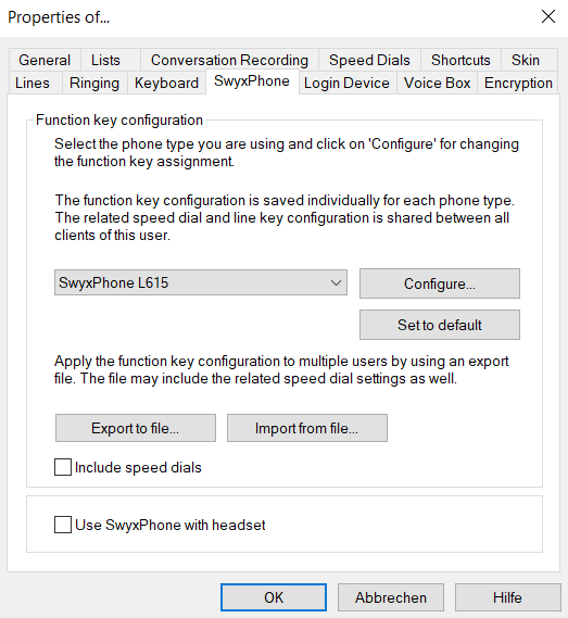 With the help of the "SwyxPhone" tab in the user settings, you can easily assign the buttons of the different IP telephones.
