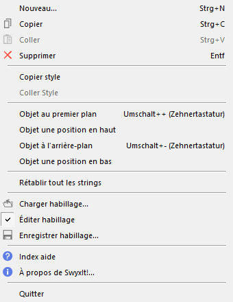 Cliquez avec le bouton droit de la souris sur l'interface de SwyxIt! Classic. Dans le menu contextuel, cliquez sur « Fichier | Habillage | Éditer » ou bien