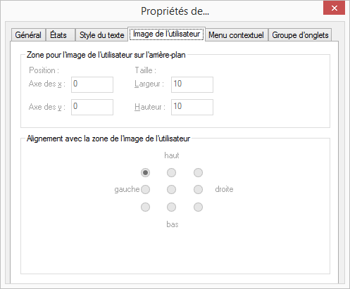 Si vous avez activé l'affichage d'une image utilisateur sous l'onglet « Général », utilisez cet onglet pour en définir les propriétés.