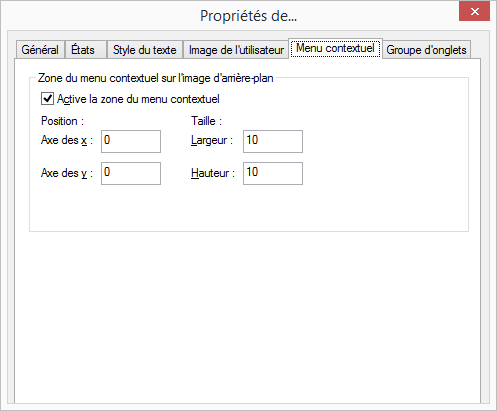2 Entrez les coordonnées de la zone à partir de laquelle le menu contextuel doit être accessible.