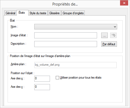 6 Activer l'option « Position utilisée pour tous les états », pour utiliser les positions indiquées pour les axes X et Y pour tous les fichiers d'image ou AVI associés aux états.