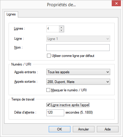 Vous pouvez bloquer une certaine ligne pour tous les appels entrants pour, par exemple, avoir le temps suffisant après une communication avec un client pour traiter le dossier de ce client. Votre SwyxIt! Classic indique alors que la ligne est occupée pour les autres appels entrants. Pour configurer systématiquement un temps de parachèvement, définissez celui-ci lors de la configuration de la ligne.