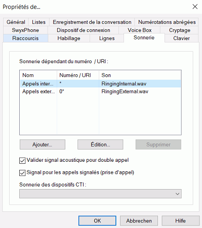 SwyxIt! Classic Peut sélectionner différentes sonneries selon le numéro d'appel de l'appelant. Vous pouvez aussi entrer ici votre numéro de poste. Dans ce cas, la sonnerie diffère en fonction du numéro de poste.