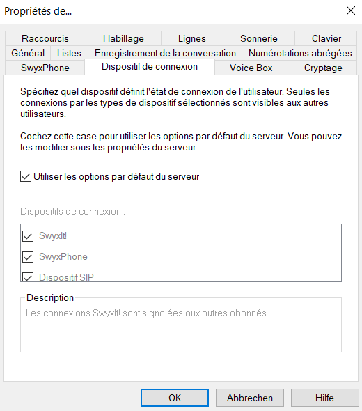1.4 Signal de statut. Lorsqu'un utilisateur est connecté par plusieurs terminaux à SwyxServer, vous pouvez déterminer lequel de ces terminaux doit afficher l'état de l'utilisateur.