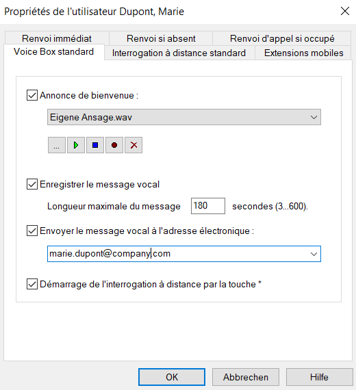 Lors de l'installation, l'assistant d'enregistrement vous a déjà demandé de formuler l'annonce de bienvenue de votre Voice Box – vous pouvez modifier cette dernière ici.