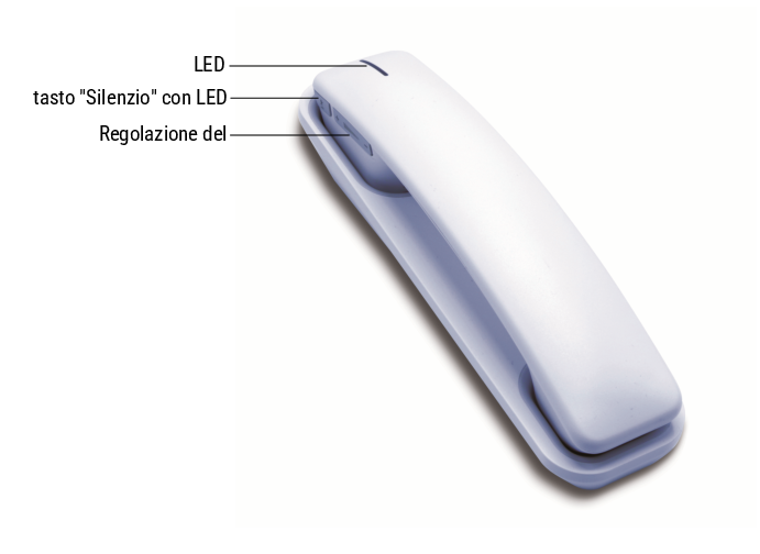 La regolazione del volume avviene con i due tasti "più" e "meno". Il tasto "Silenzio" attiva o disattiva il microfono.