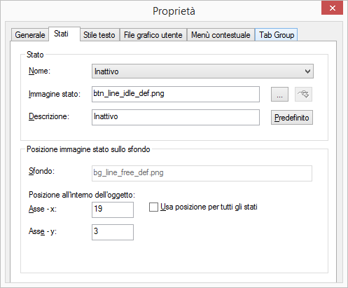 6 Attivare l'opzione "Usa posizione per tutti gli stati" per estendere la posizione indicata sulle assi x e y a tutti i file grafico o AVI abbinati ai vari stati.