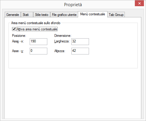2 Indicare le coordinate per l'area nell'ambito della quale il menù contestuale dovrà essere disponibile.