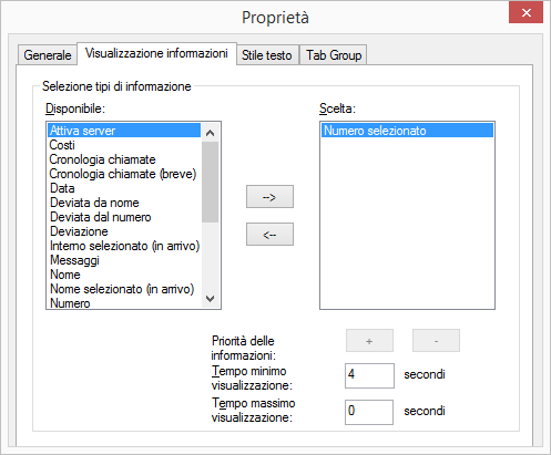 3 Nel campo "Tempo massimo visualizzazione" si indica il tempo massimo per il quale si desidera che informazioni rimangano visualizzate.