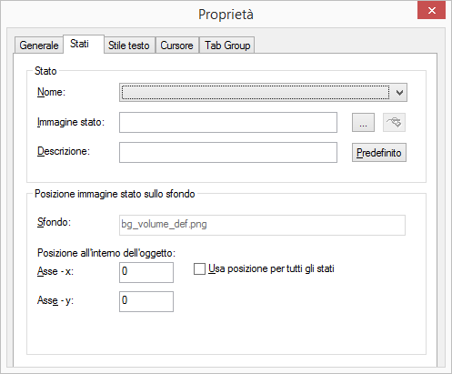 6 Attivare l'opzione "Usa posizione per tutti gli stati" per estendere la posizione indicata sulle assi x e y a tutti i file grafico o AVI abbinati ai vari stati.