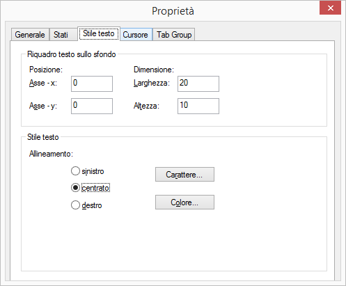 Scheda "Stile testo"