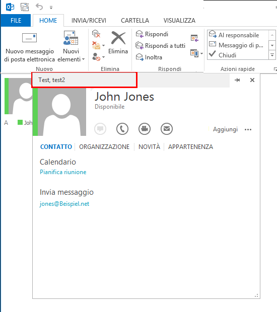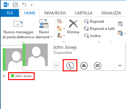 1 Muovere il puntatore del mouse sulla casella colorata per aprire la scheda contatto di Outlook.