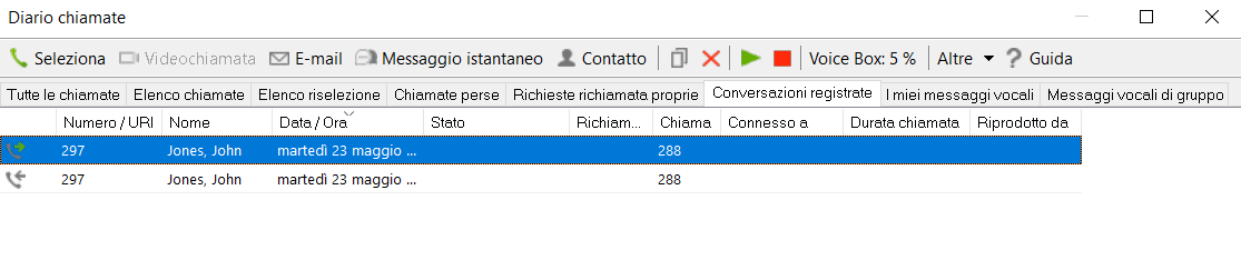SwyxIt! Classic consente all'utente di registrare le conversazioni. Mediante un semplice clic con il mouse è possibile registrare la conversazione o parti di essa. Le registrazioni vengono gestite mediante un apposito elenco nel diario delle chiamate. Per ulteriori indicazioni sulla registrazione di conversazioni consultare il, vedi