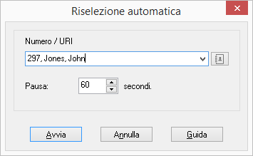 Se il tasto riselezione è configurato in modo da usare sempre la riselezione automatica (opzione "Usare sempre la riselezione automatica"), cliccando sul tasto sia avvia automaticamente la riselezione dell'ultimo numero chiamato. Questa opzione per default è disattivata. Questa funzione può essere attivata nelle proprietà dell'elenco riselezione.