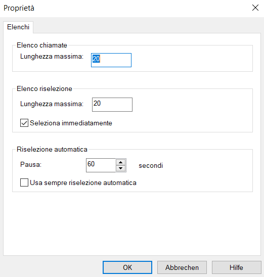 Se questa opzione rimane disattivata, il numero scelto può essere modificato prima della selezione vera e propria. Cliccando ripetutamente sul tasto riselezione è possible scorrere l'elenco riselezione.