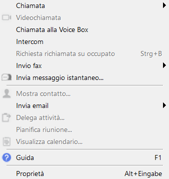 Visualizza un contatto, informazioni per | Qui si vede se un contatto abbinato a un tasto nome può essere abbinato a un utente Exchange o a un utente Lotus/IBM/HCL Notes, a uno dei propri contatti o se non è possibile un abbinamento. La voce di menù cambia in dipendenza dell'abbinamento: |
