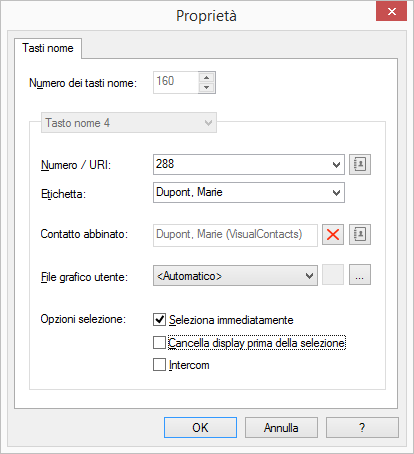 Impostando "Automatico " sul tasto nome verrà visualizzata automaticamente l'immagine memorizzata dall'utente per il proprio profilo. Se cambia immagine, cambierà anche l'immagine sul tasto nome.