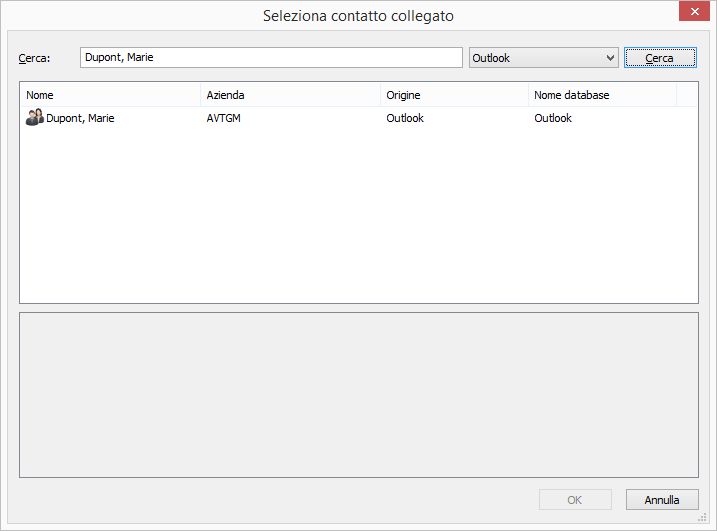 I dati del contatto vengono riportati nei relativi campi del dialogo.