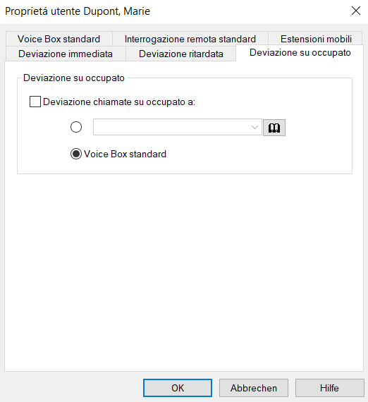 Attivata la deviazione alla Voice Box standard, verranno applicate le impostazioni configurate nella scheda "Voice Box standard".