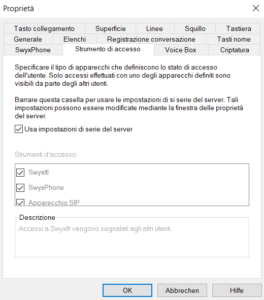 1.4 Segnalazione dello stato. Se un utente è connesso allo SwyxServer con diversi terminali, qui si può definire quale di essi segnalerà lo stato dell'utente.