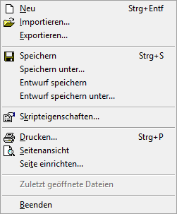 Exportieren... | Speichert das Skript unter einem von Ihnen neu einzugebenden Namen in einem gewünschten Verzeichnis. |