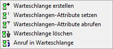 Warteschlange | ![]() | Blöcke, die der Verwaltung von Anrufen innerhalb einer Warteschlange dienen: |