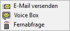 E-Mail | ![]() | Alle Blöcke, in denen eine aufgenommene Sprachnachricht weitergeleitet wird: Siehe 2.6.5.10 E-Mail versenden, siehe 2.6.5.11 Voice Box, siehe |