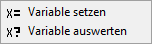 Variable | ![]() | Blöcke, in denen Variablen definiert und ausgewertet werden: Siehe 2.6.6.1 Variable setzen, siehe |