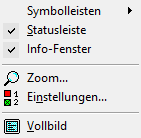 Welche Symbolleisten hier erscheinen, können Sie im Menü „Ansicht“ bestimmen. Es stehen folgende Symbolleisten zur Verfügung: