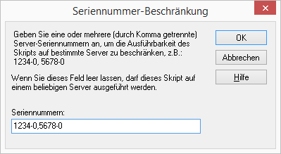 3 Geben Sie die Seriennummern der SwyxServer ein, auf denen dieses Skript benutzt werden darf.
