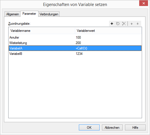1 Auf der Registerkarte „Parameter“ sehen Sie die Liste der bereits vorhanden Variablen.
