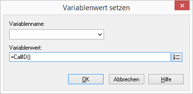 Der Variablenwert kann eine Zeichenfolge (String) sein. Beginnt die Eingabe in diesem Feld mit einem Gleichheitszeichen, so werden alle folgenden Zeichen als numerischer Wert oder als Ausdruck interpretiert. Bestehende Variablen und Systemfunktionen können Sie dabei einfügen. Klicken Sie auf