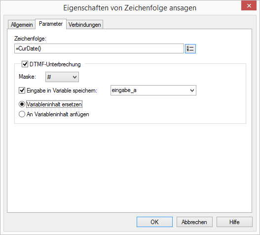 Diese Ansage können Sie direkt eingeben oder über eine Variable oder Systemfunktion definieren.