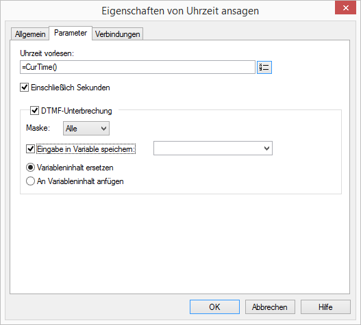 Diese Ansage können Sie direkt eingeben oder über eine Variable oder Systemfunktion definieren.