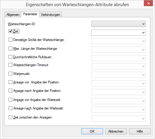 Die zu einer Warteschlange gehörenden Detail-Informationen können hier in verschiedenen Variablen gespeichert werden. Zur Verfügung stehen im Einzelnen folgende Informationen: