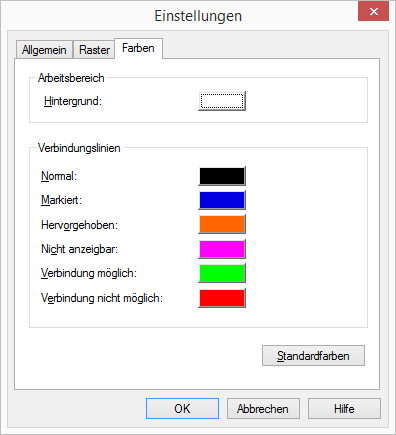 Auf den folgenden Registerkarten können Sie nun die Darstellung des Grafischen Skript Editors festlegen.