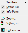 You can indicate which toolbars should appear here in the "View" menu. The following toolbars are available for selection: