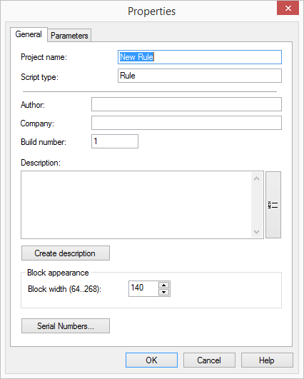 Brief information describing the function of the script must be entered under "Description". By clicking on "Create description", a description will be generated by the Graphical Script Editor. This text will appear later in the Call Routing Manager in the window "Description: This Rule shall apply…".