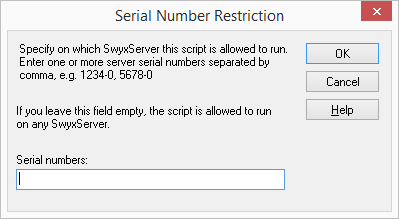 3 Enter the serial number of the SwyxServer on which this script may be used.